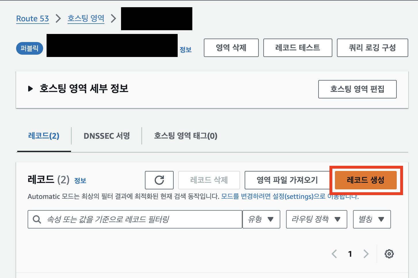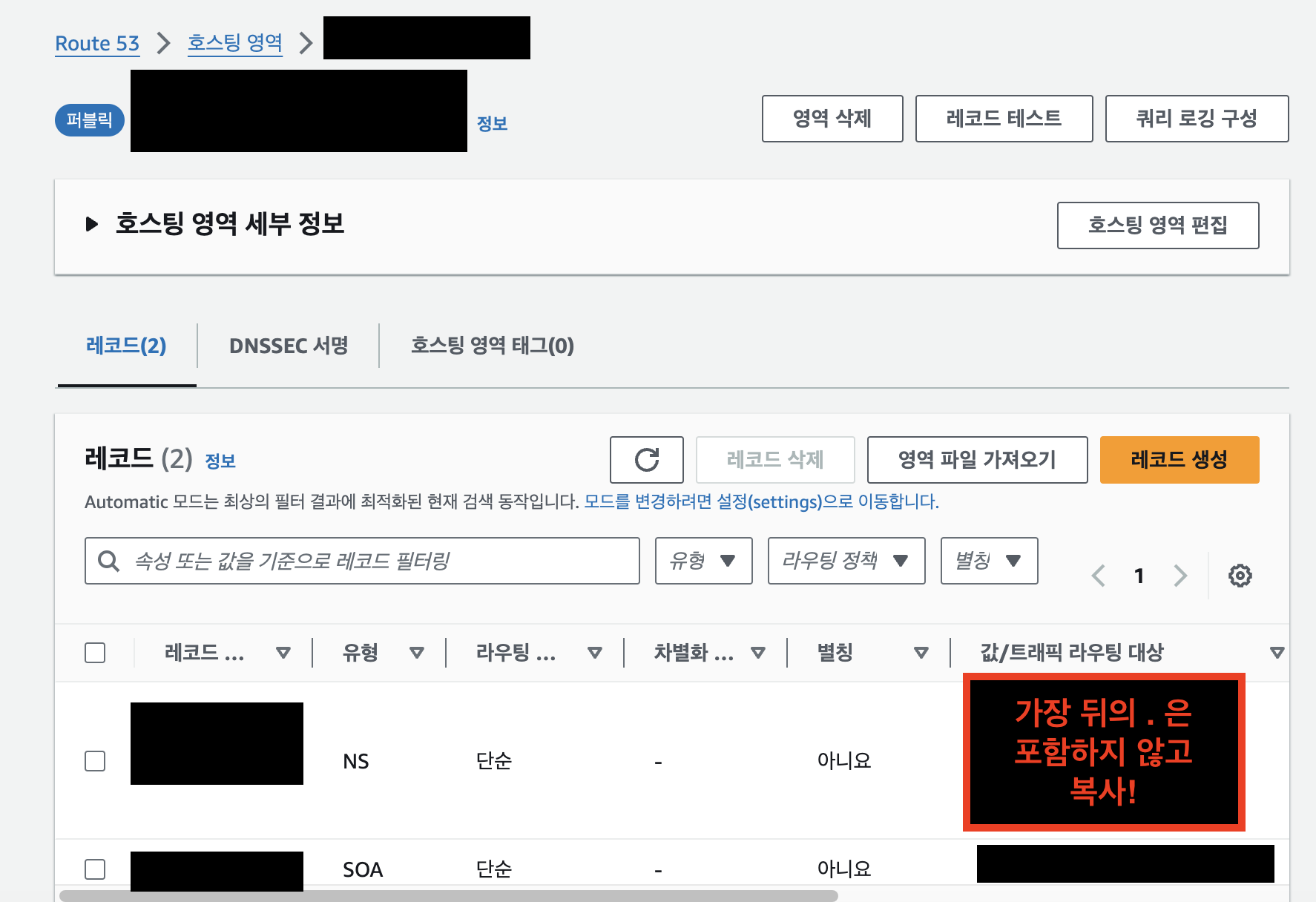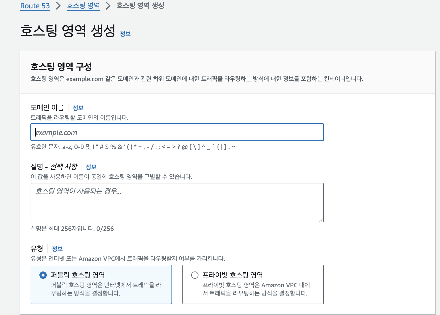 - 유형 : 퍼블릭 호스팅 영역