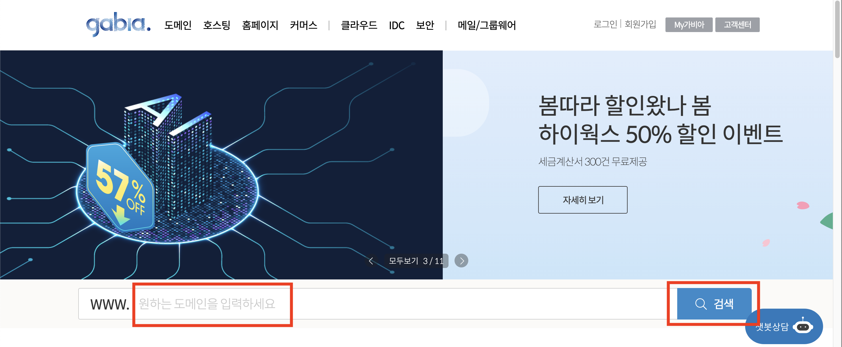 - https://www.gabia.com 접속 후 원하는 도메인 이름 검색 > 구매