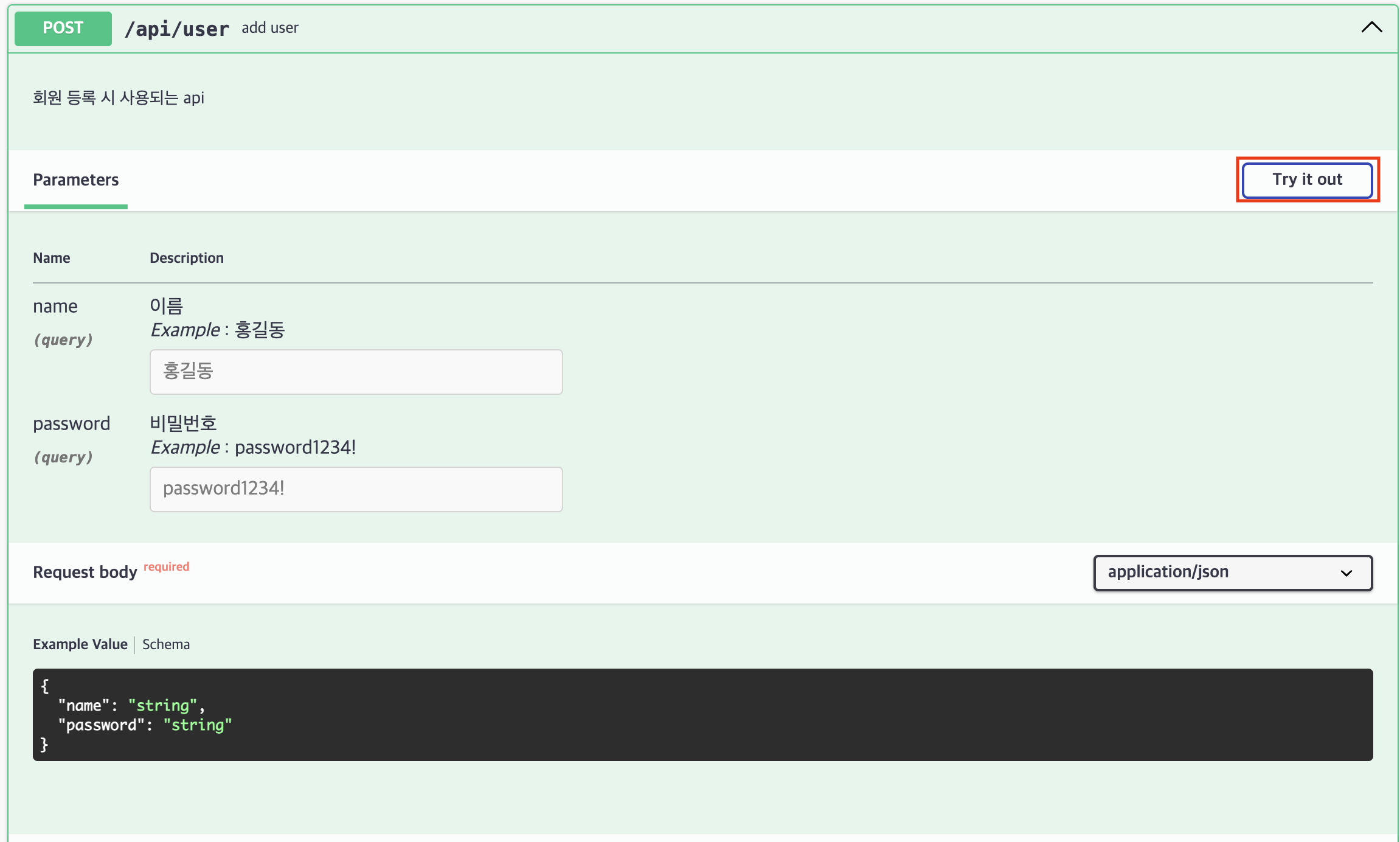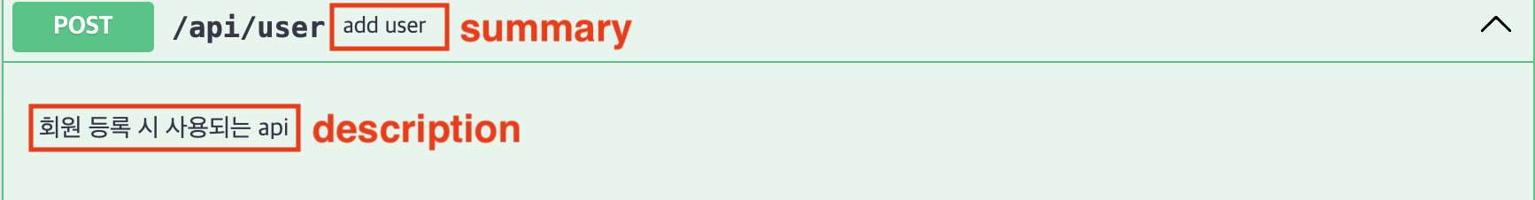@Operation(summary = "add user", description = "회원 등록 시 사용되는 api")