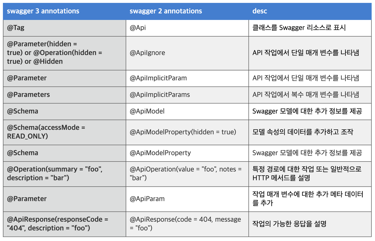 - 최근에는 Swagger 대신 OpenAPI 3.0 표준을 지원하는 springdoc-openapi-ui 라이브러리가 더 많이 사용됨
