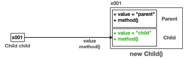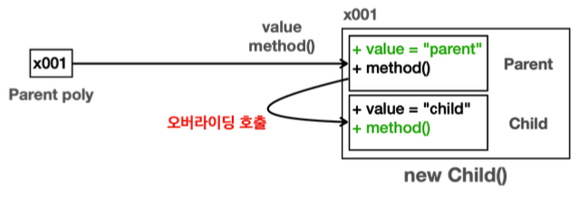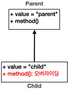 오버라이딩 된 메서드는 항상 우선권을 가짐!!! ⇒ 따라서 child.method 실행된 것