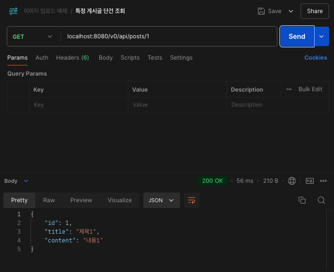 3-3. 특정 게시글 조회 (GET localhost:8080/v0/api/posts/1)