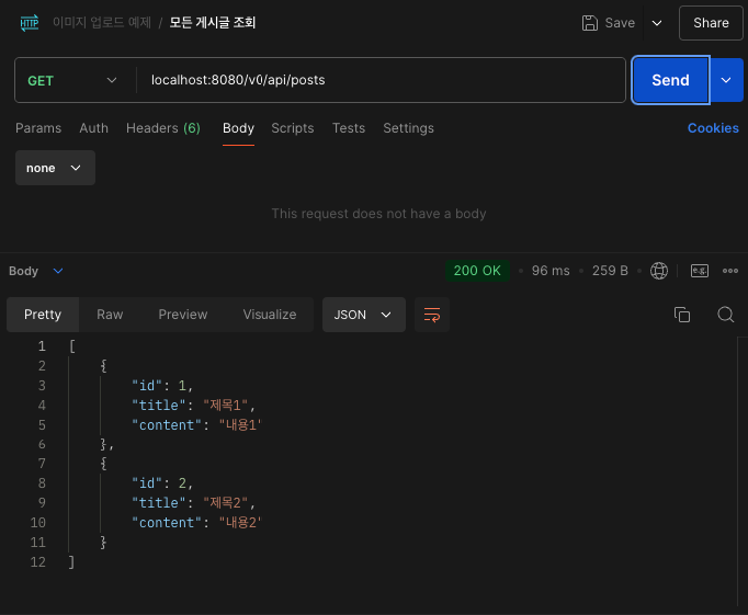 3-2. 모든 게시글 조회 (GET localhost:8080/v0/api/posts)