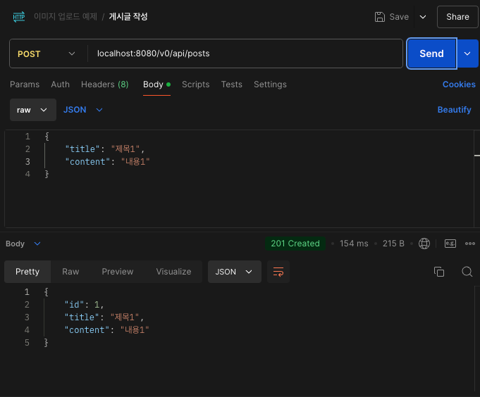 3-1. 게시글 작성 (POST localhost:8080/v0/api/posts)