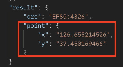 - 경도(lon) : 위에서 확인한 위치정보의 x 값