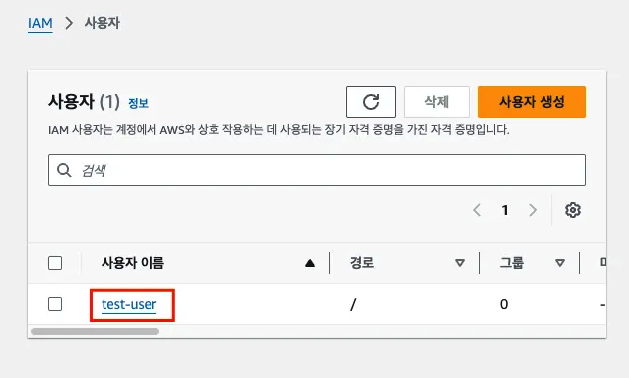 - 생성된 사용자 이름 클릭