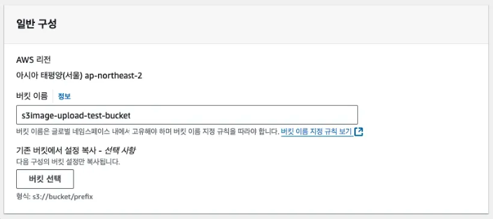 - 버킷 이름 : 대문자 사용 불가, 전세계에서 고유한 이름으로 생성해야 함