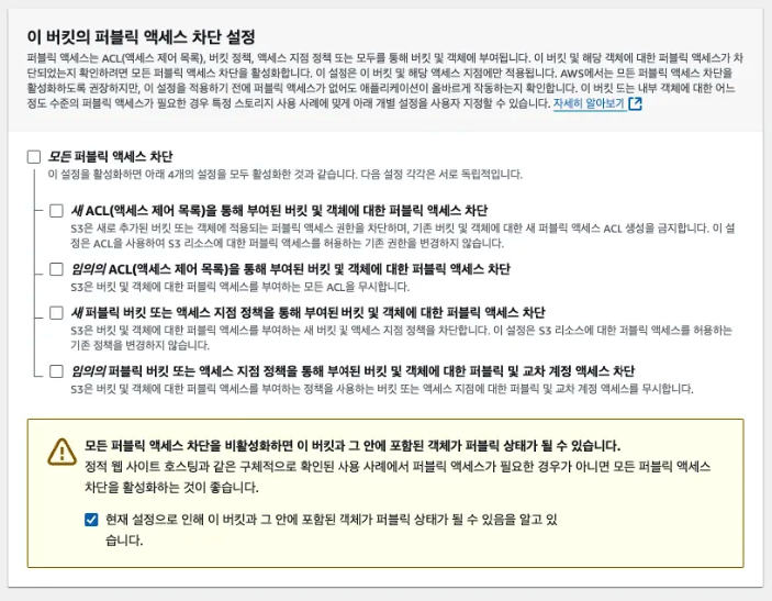 - 모든 퍼블릭 액세스 차단 선택 해제
