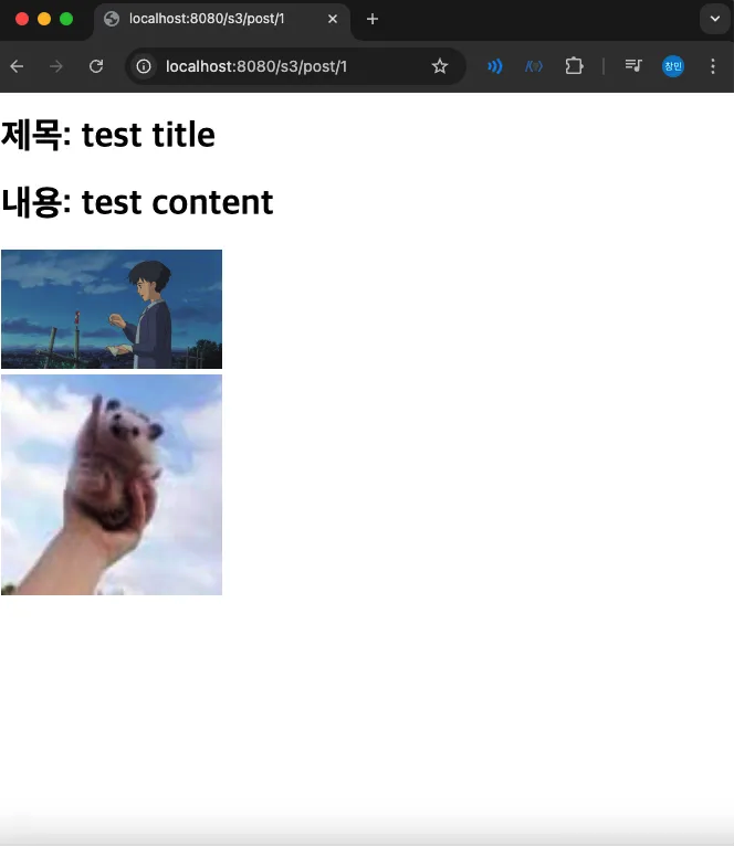 3-5-4. 이미지 출력 확인(http://localhost:8080/s3/post/1)