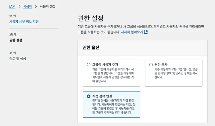 - 직접 정책 연결 선택