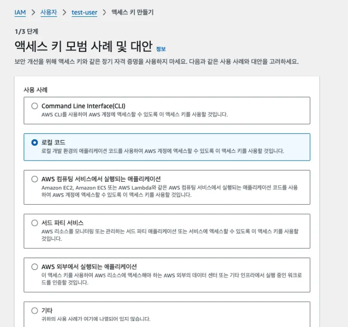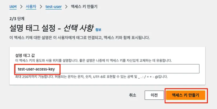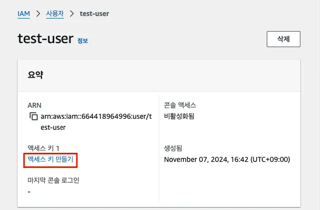 - 액세스 키 만들기 클릭