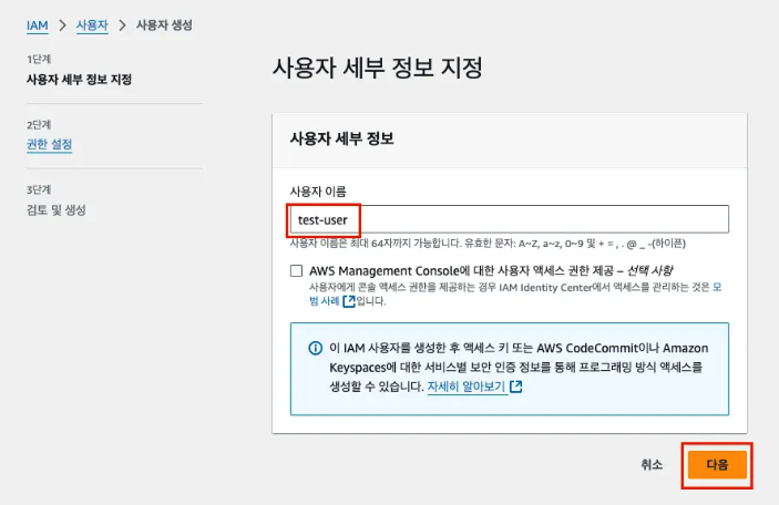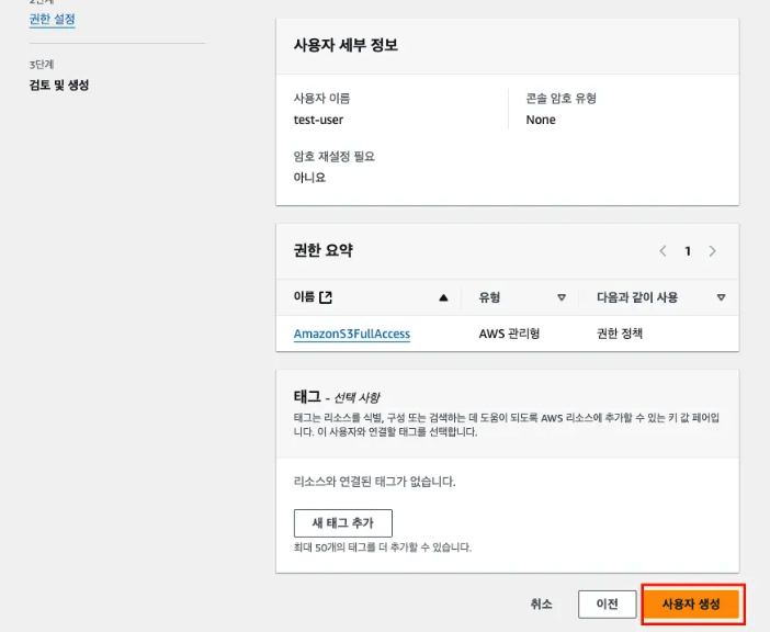 - 내용 확인하고 사용자 생성 클릭
