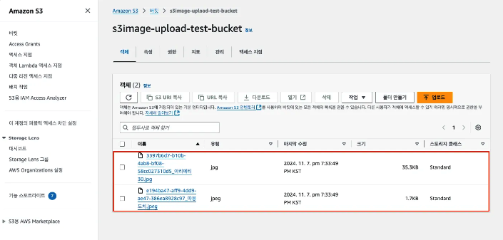 3-5-2. AWS S3 버킷에 이미지 업로드 됨을 확인