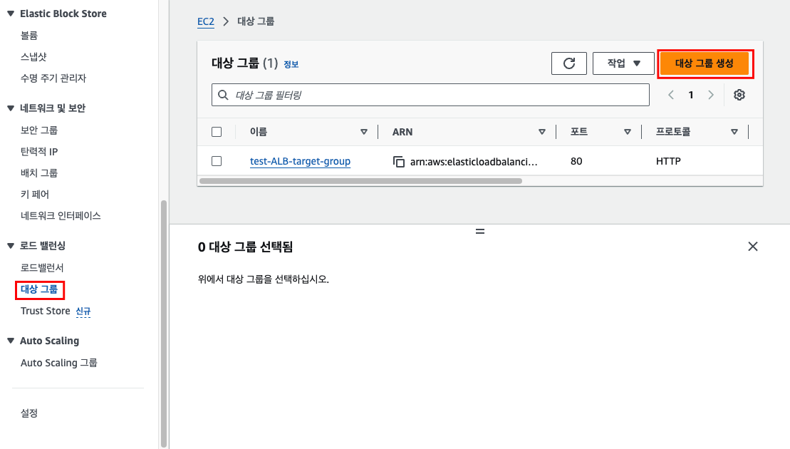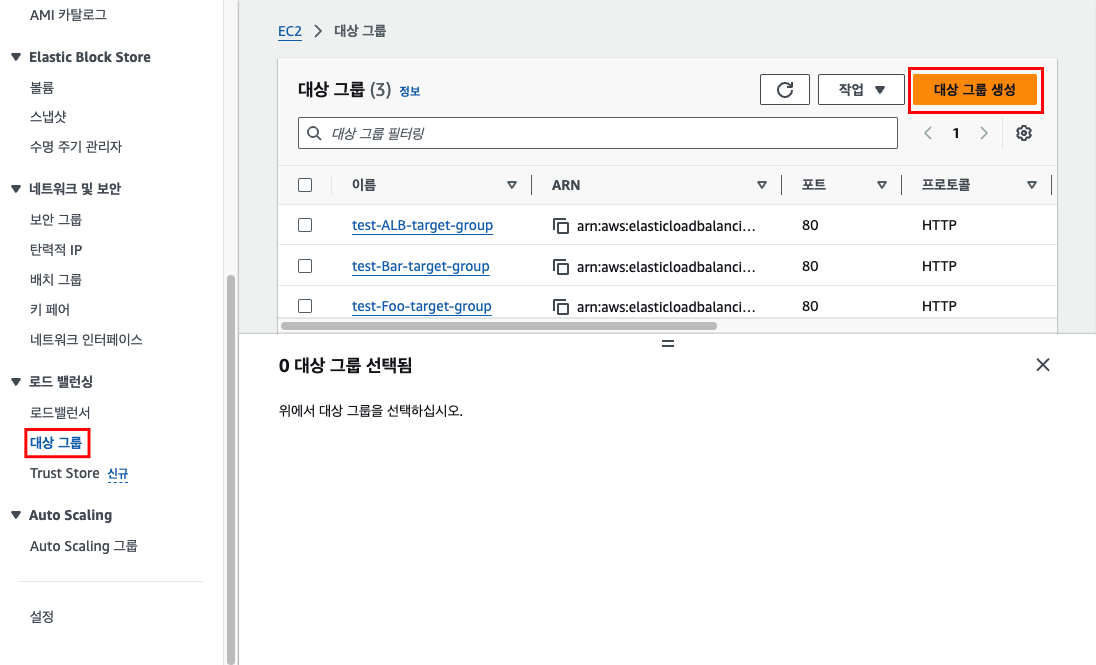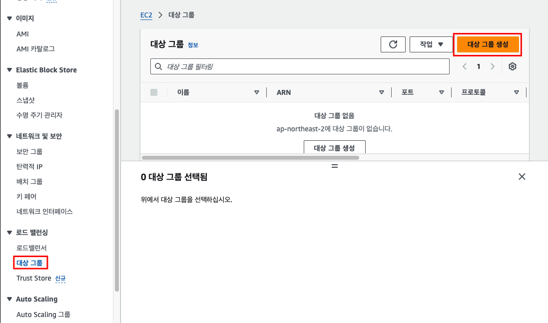- 왼쪽의 대상 그룹 클릭 → 대상 그룹 생성 클릭