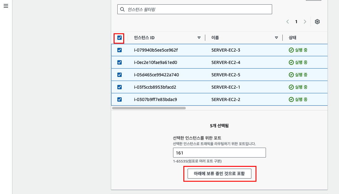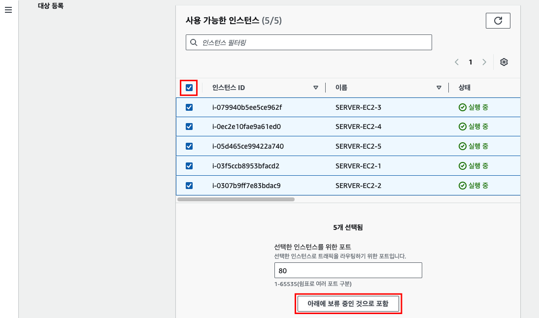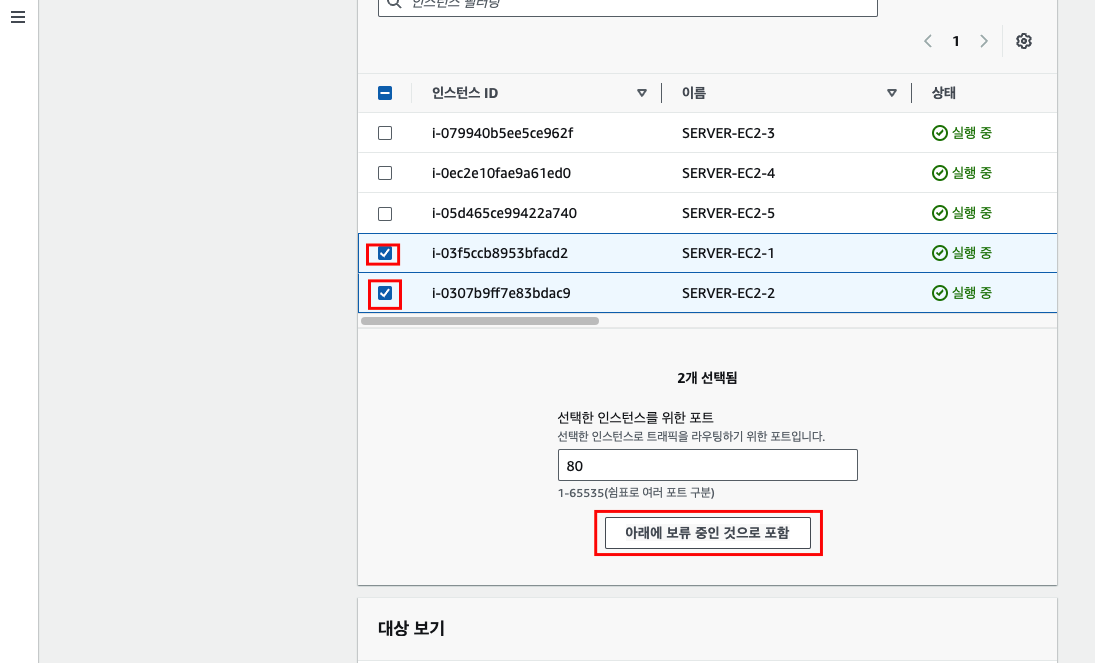 - SERVER-EC2-1, SERVER-EC2-2 체크 → 아래에 보류 중인 것으로 포함 클릭