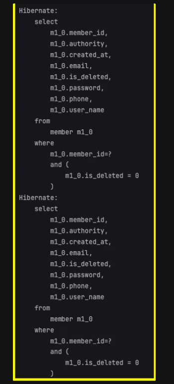 - 기존 메서드가 생성하는 쿼리 ( ? : 넘어오는 파라미터)