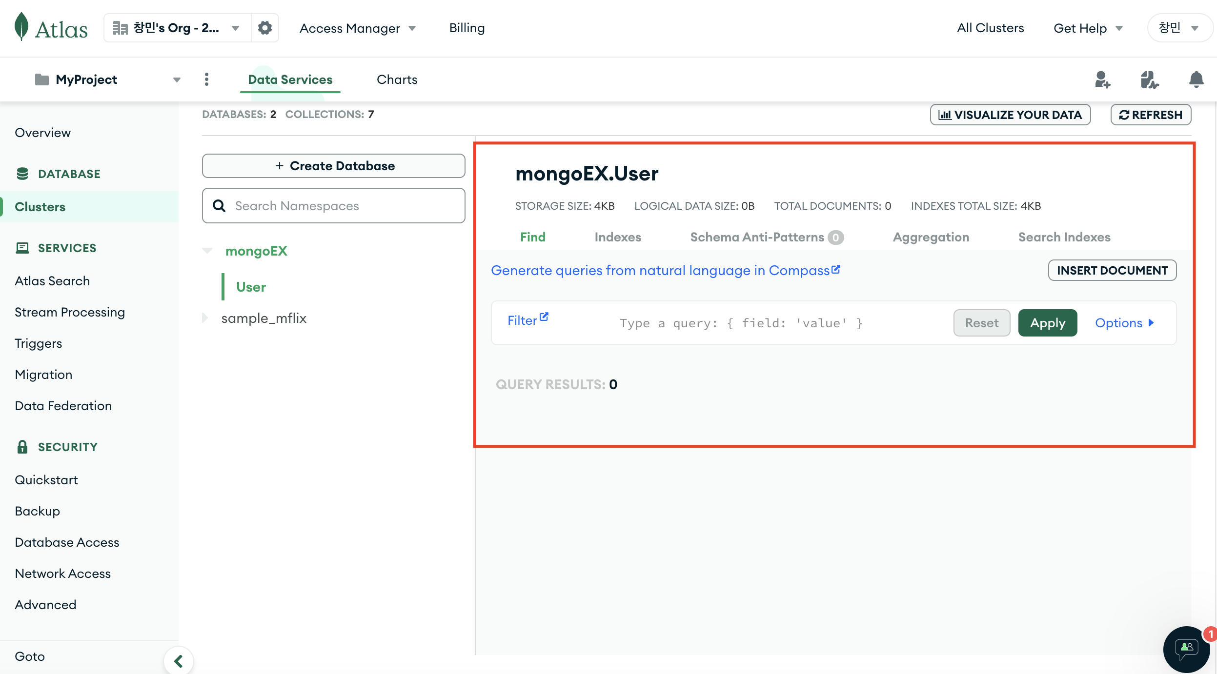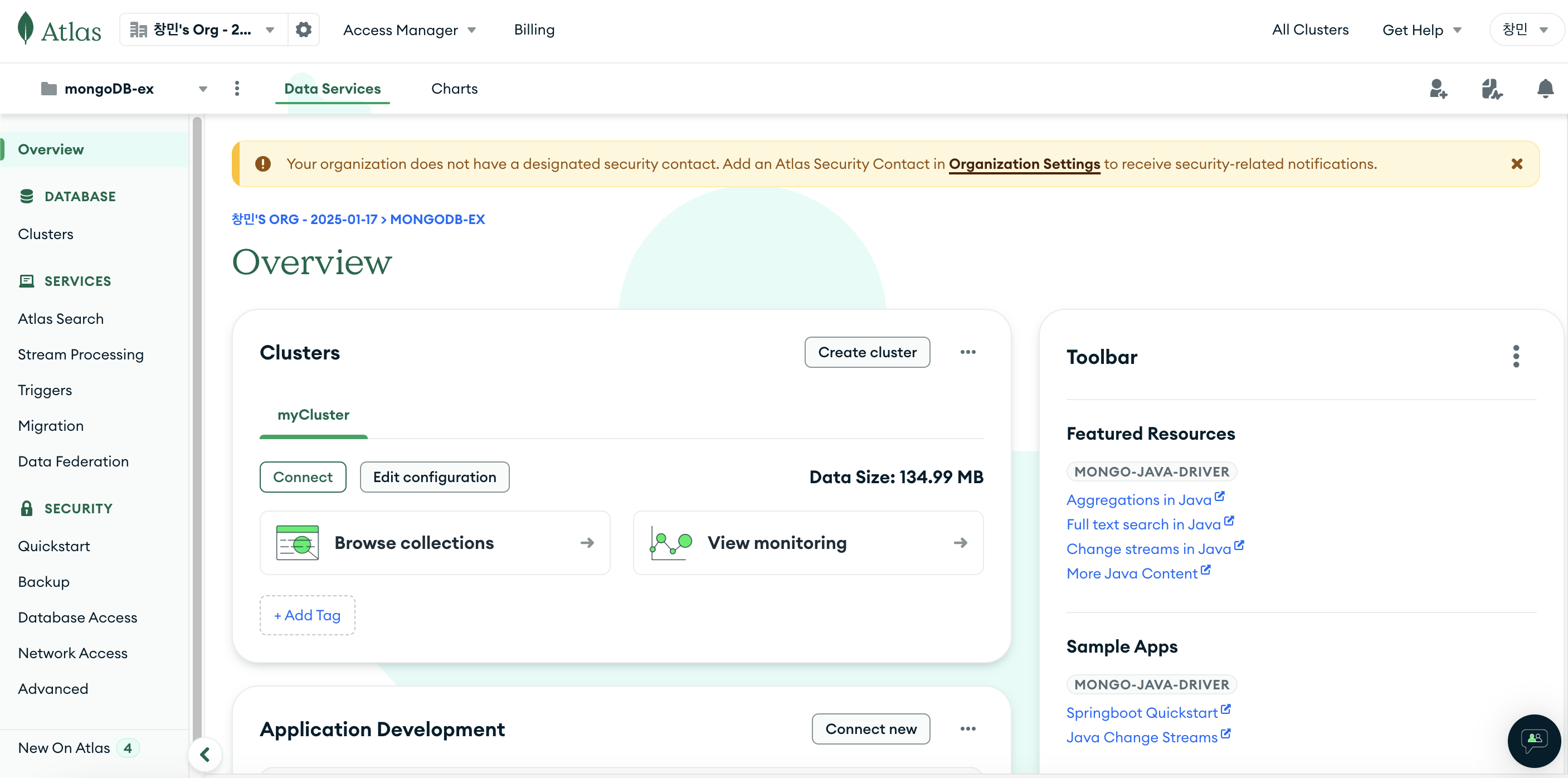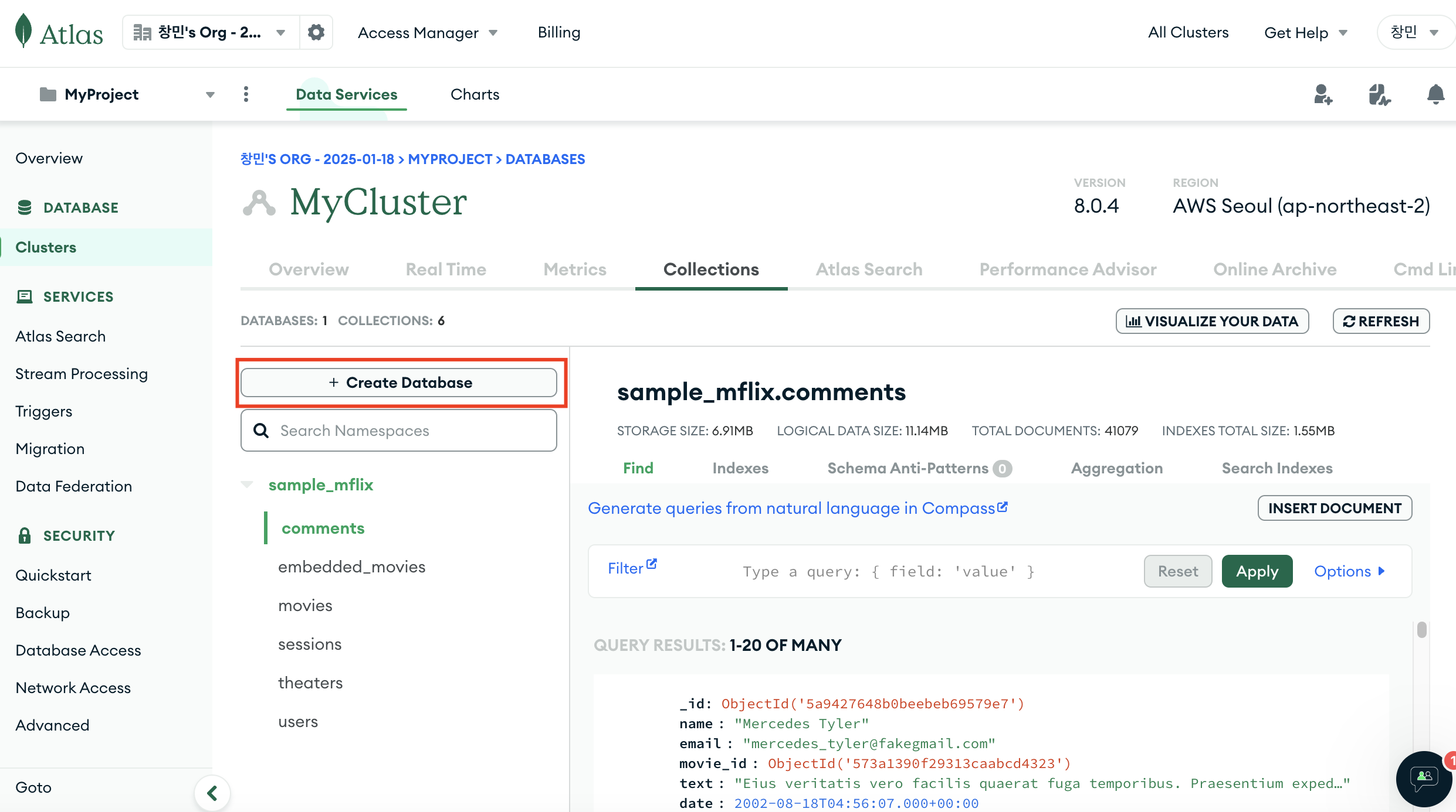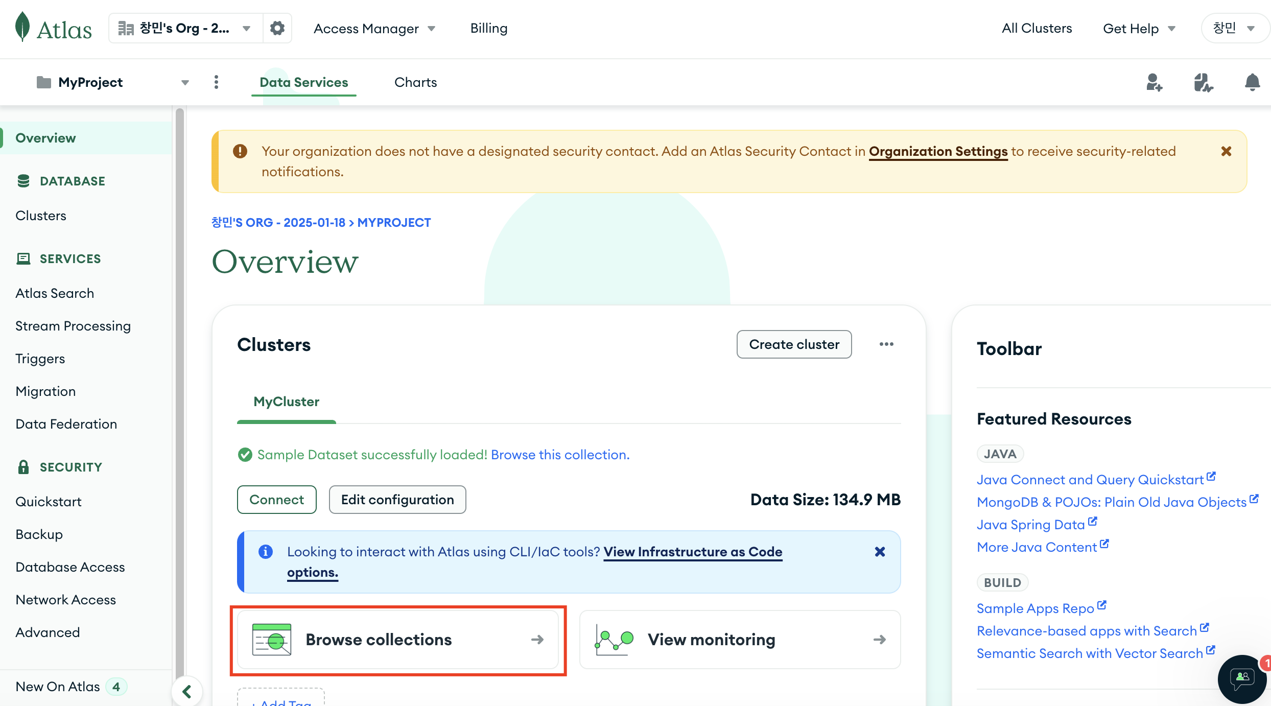 1. Atlas MongoDB 홈 화면에서 Browse Collections 클릭