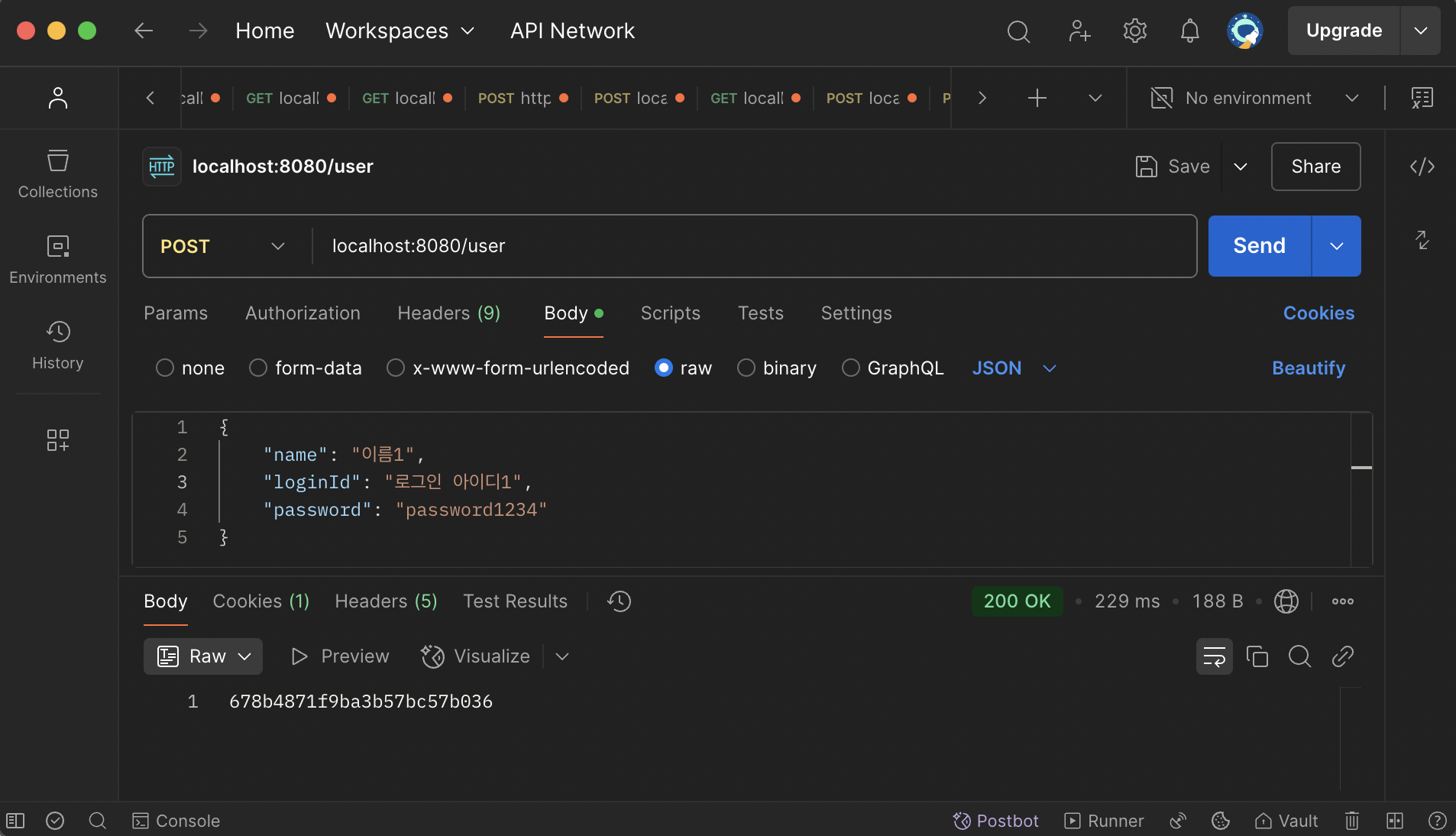 - [POST] localhost:8080/user
