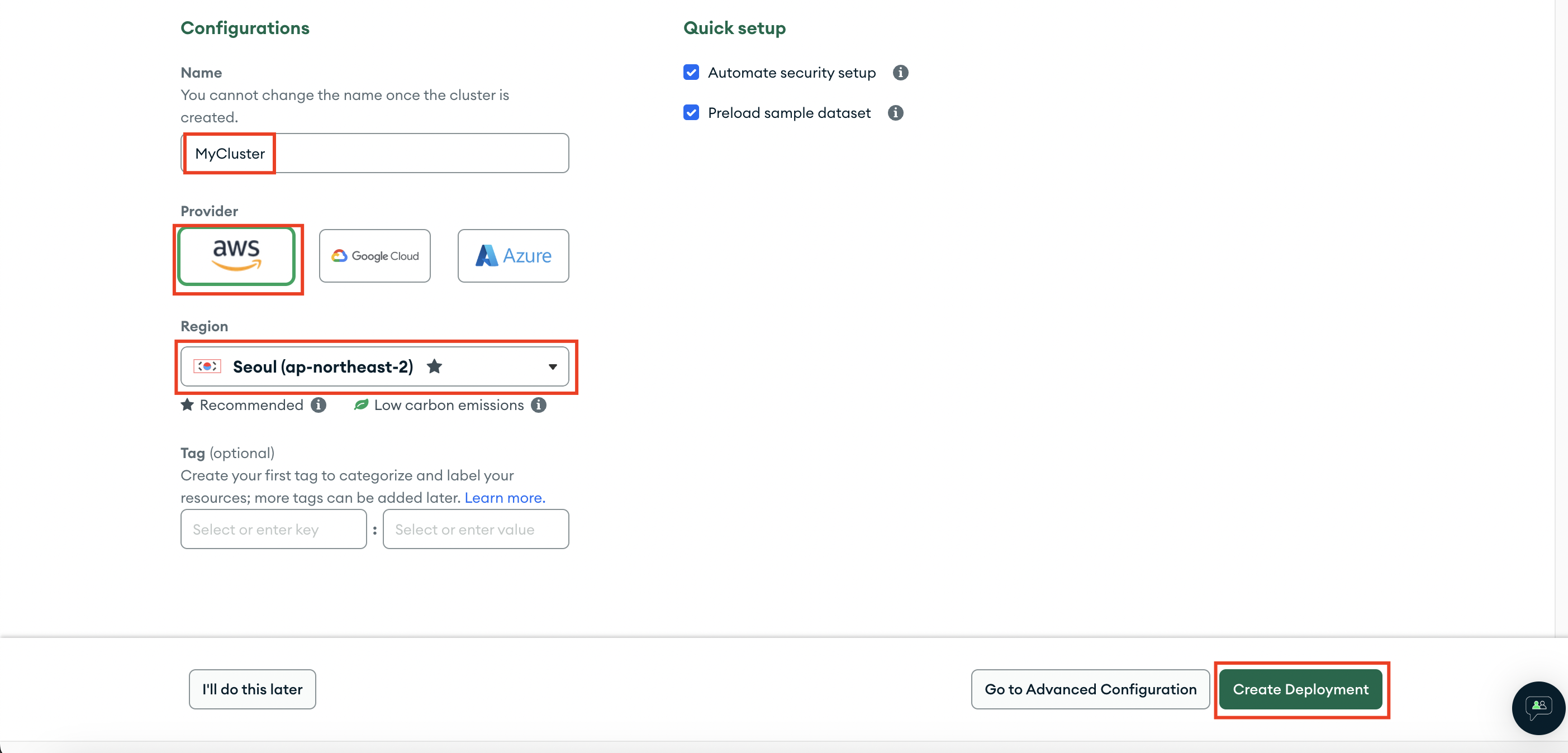 3. 정보 기입 → Create Deployment 클릭