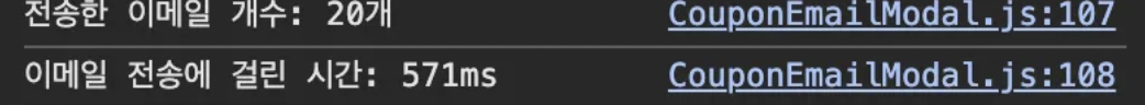 console.log(`이메일 전송에 걸린 시간: ${duration}ms`);