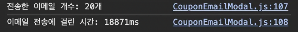 ⇒ 20개 이메일 전송 시 18.871s (= 18871ms) 소요됨을 확인