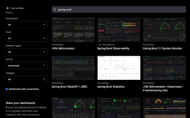 - Prometheus와 같은 시계열 데이터 저장소에 연결해 시각화 대시보드를 제공하는 도구