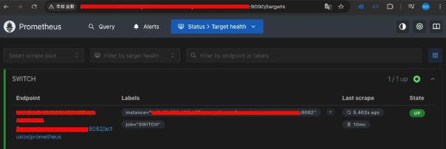 - [EC2 퍼블릭 IP]:9090/targets 접속 시 아래와 같은 화면이 나온다면 성공