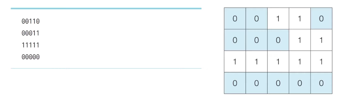 - 이때 구멍이 뚫려있는 부분은 0, 그렇지 않은 부분은 1이다.