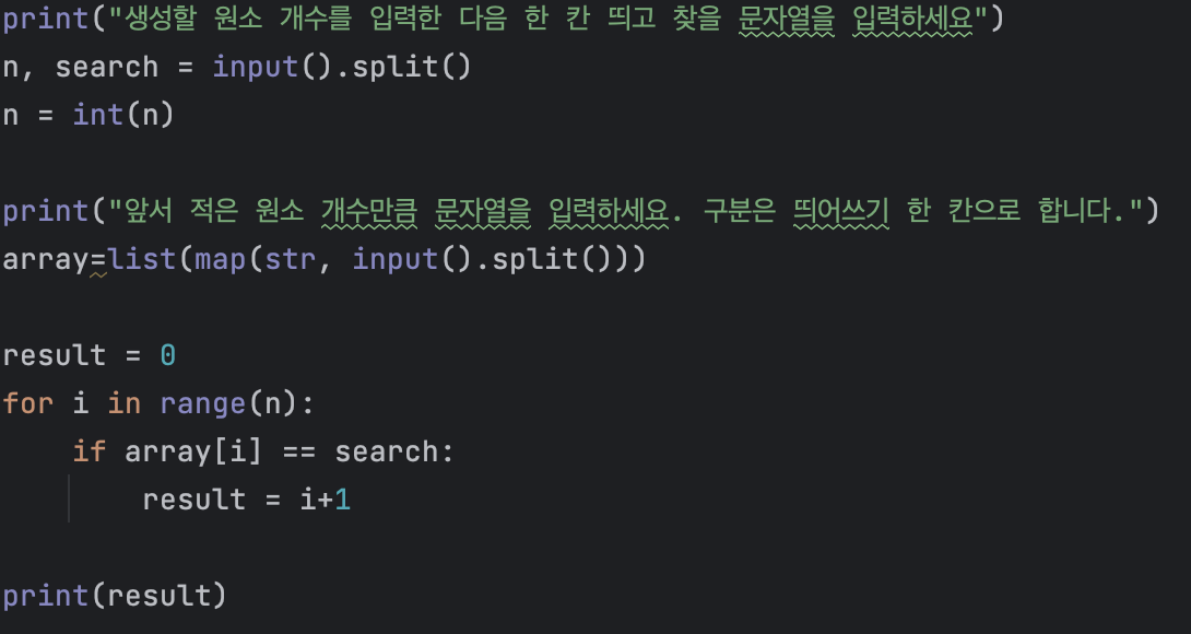순차 탐색 알고리즘의 소스코드는 아래와 같다.