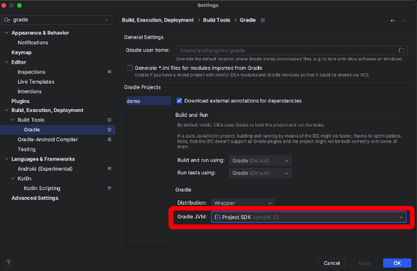 Gradle JVM도 동일한 버전으로 변경