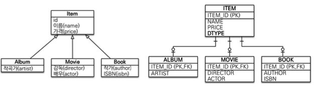 DTYPE (구별자) 속성을 상위 테이블에 추가하여 하위 테이블을 구분