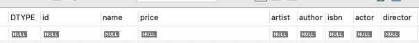 구별이 필요하므로 DTYPE 필수 (@DiscriminatorColumn 어노테이션을 안 써도 자동으로 삽입됨)