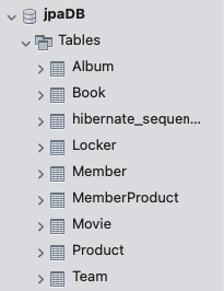 MySQL 결과 => 서브타입의 엔티티는 테이블이 생성되지 않음, Item 테이블에 모든 속성 추가됨