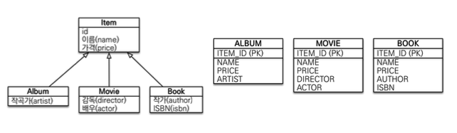 슈퍼 타입에 해당하는 Item 엔티티의 속성이 모두 서브 타입에 해당하는 엔티티에 내려감