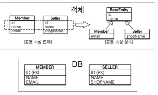 관계형 데이터베이스에는 상속관계가 존재하지 않는다. 대신 슈퍼타입, 서브타입이 존재하는데 이를 객체의 상속관계로 풀어내는 매핑이다.