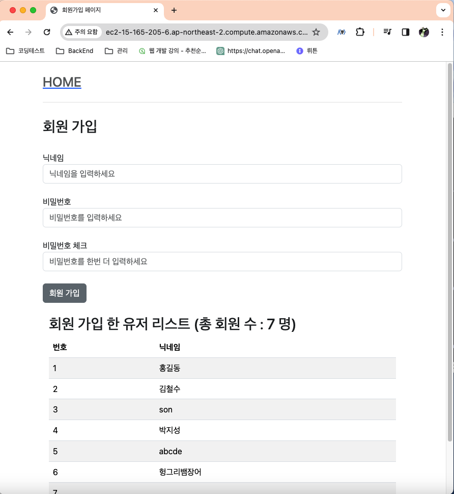 - 주소창에 [인스턴스 퍼블릭 IPv4 DNS]:8080 입력하여 배포 결과 확인