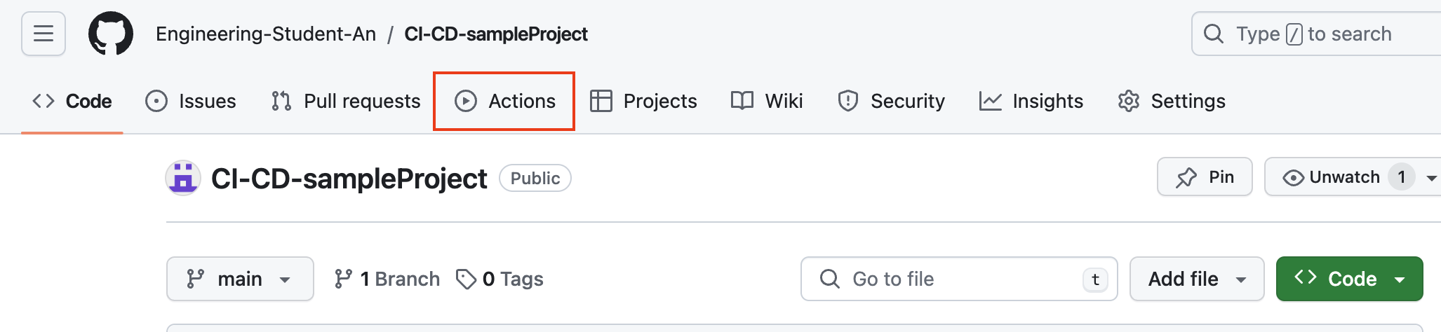 - 이전 게시글에서 생성해 둔 레포지토리와 샘플 프로젝트 사용