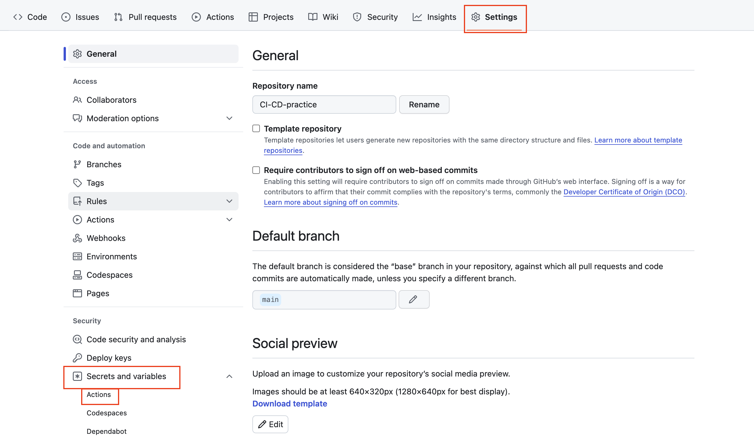 - Settings > Secrets and Variables > Actions 클릭