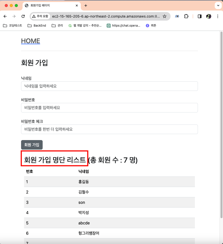 - 수정 결과를 한 눈에 보기 쉽게 "회원가입 한 유저 리스트" -> "회원가입 명단 리스트" 로 변경
