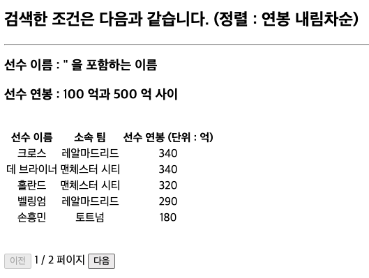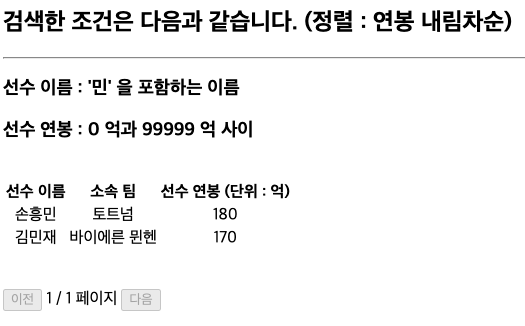 PlayerRepository 에서 언급한 대로 연봉 시작, 끝 변수가 항상 값이 있게끔 설정함으로써 검색 경우를 반으로 줄임