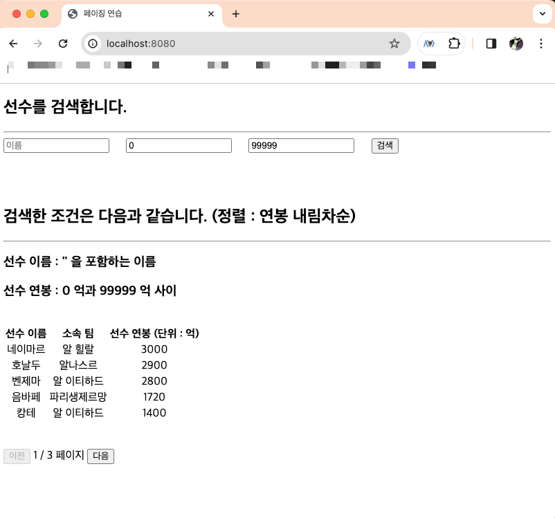 // PageRequest.of(페이지 번호, 페이지 당 5개씩 출력, 연봉 기준 내림차순)