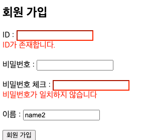 - 회원가입 화면 (오류)