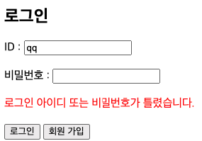 - ID나 비밀번호가 틀리면 로그인 되지 않음