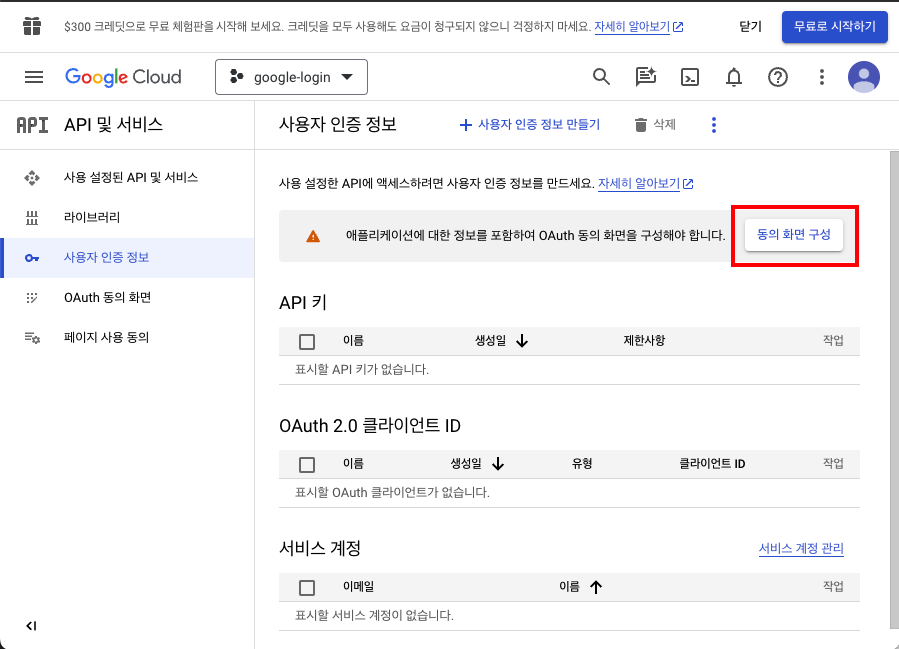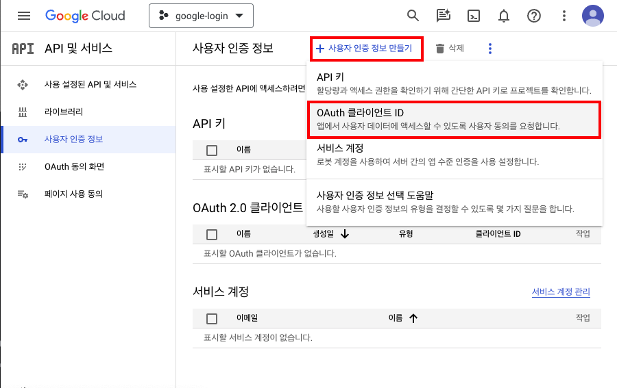 - 프로젝트 이름 : google-login > 만들기