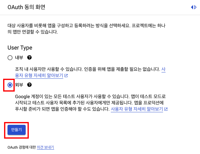 - User Type : 외부 > 만들기