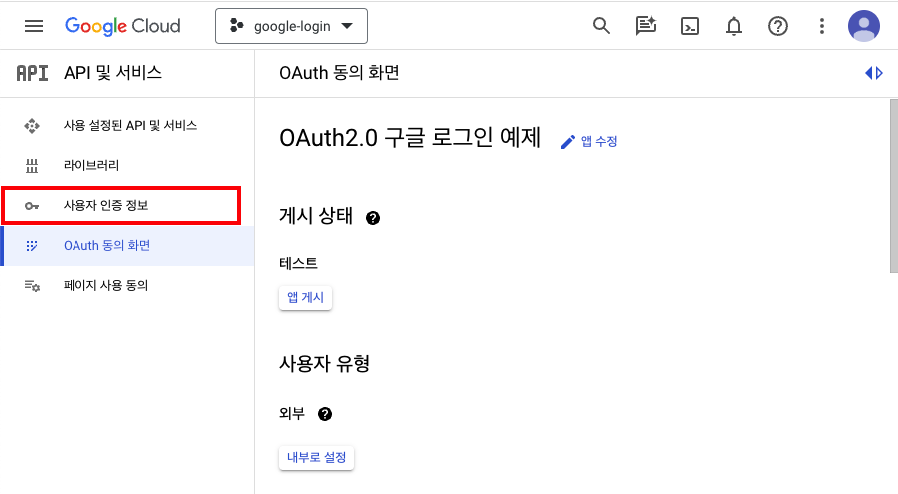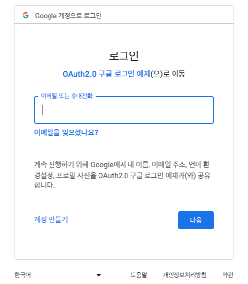 - 앱 이름 : OAuth2.0 구글 로그인 예제