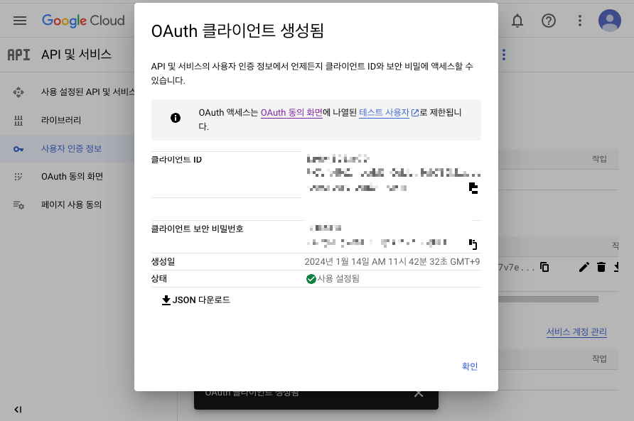 2-3. 사용자 인증 정보 (OAuth 클라이언트) 생성