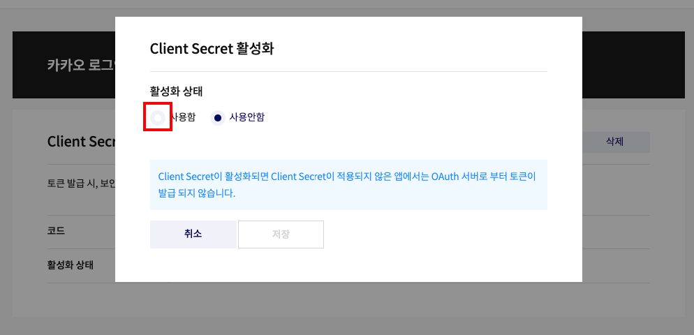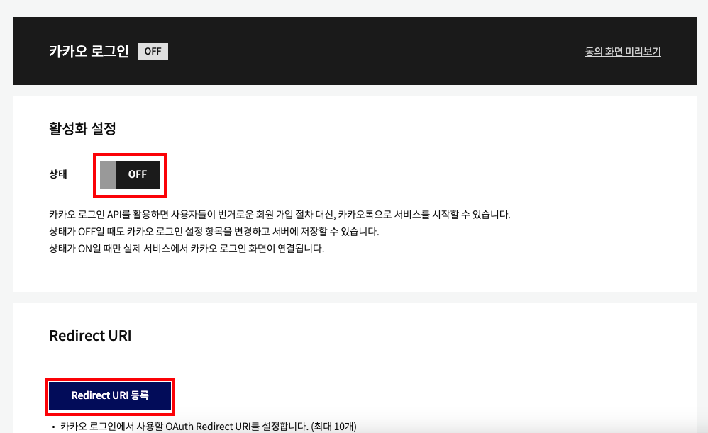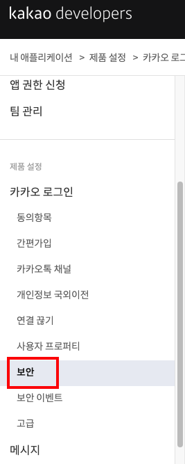 - 대시보드의 카카오 로그인 탭