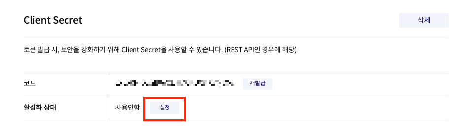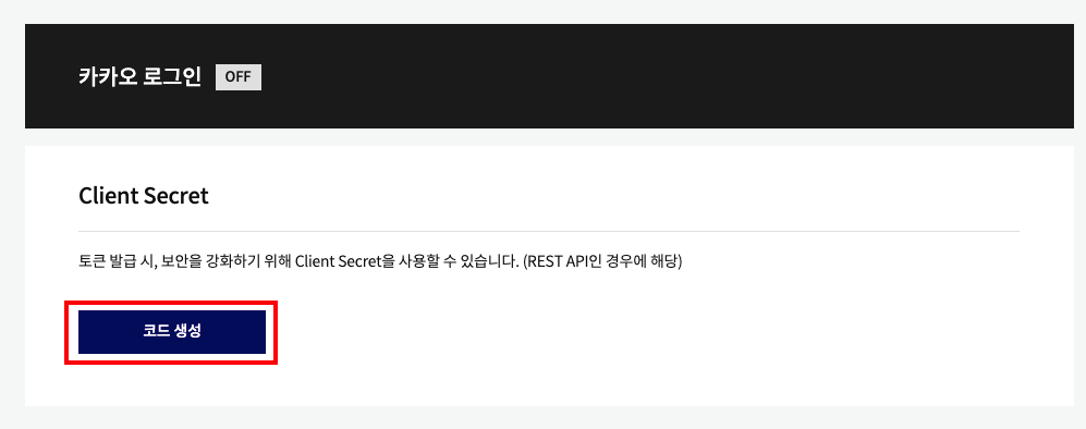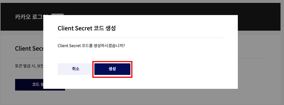 - Client Secret > 코드 생성 > 생성