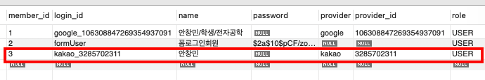 - ID : "provider(kakao)"_"providerId" 형태